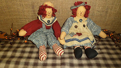 COUNTRY RAGGEDY ANN & ANDY SHELF SITTER RAG FABRIC DOLLS PRIMITIVE DECOR