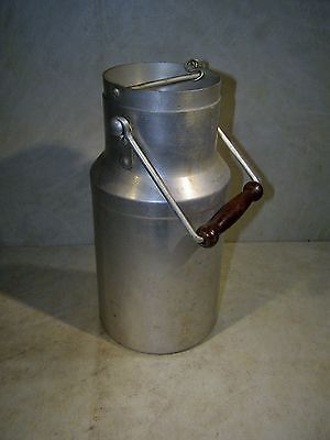 Antique Aluminum Milk / Beer Can Pail With Wooden Handle - Half Gallon Size NR