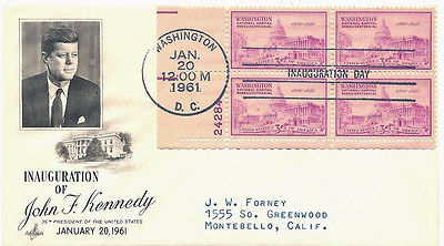 Title (ebay affiliate link): 1961 Washington, DC John F. Kennedy Inaugration Day Cover w Cachet, Nice Stamps
