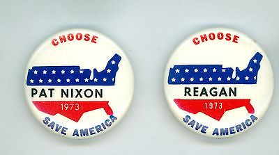 2 Vintage 1973 Watergate Nixon Pat Nixon Reagan Political Pinback Buttons