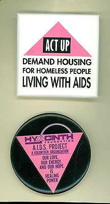 Title (ebay affiliate link): 2 Vintage 1980s Gay Rights ACT UP Aids Project Political Cause Pinback Buttons