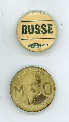 2 Vintage 1900s Chicago Mayors' Busse & Dunne Political Campaign Pinback Buttons