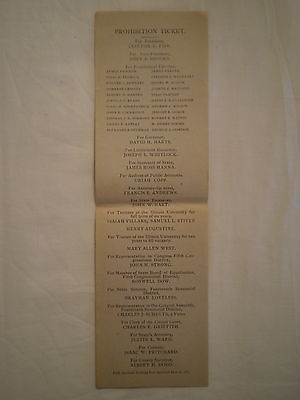 ANTIQUE 1887 CHICAGO ILLINOIS PROHIBITION PARTY ELECTORIAL VOTING TICKET