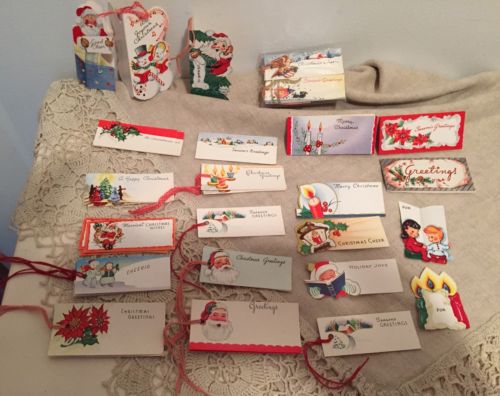 Title (ebay affiliate link): ANTIQUE VINTAGE DECO CHRISTMAS GIFT TAGS SCRAPBOOK CRAFT LOT OF 47 TAGS CUTE!!