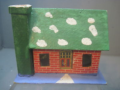 Vtg 3in Cardboard Putz House Ornaments JAPAN , BRICK CAPE WITH GREEN ROOF