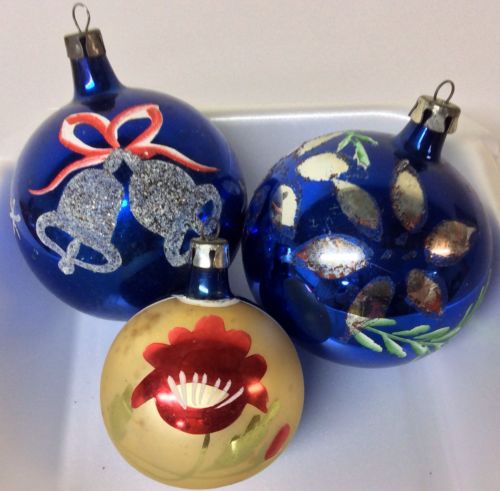 3 Vintage Glass Polish Ornaments