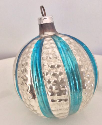 Title (ebay affiliate link): Antique German Glass Christmas Ornament - Round Silver Bumpy Blue Stripes