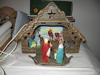 Vtg Nativity scene-cardboard stable-with figures attached-lights up.