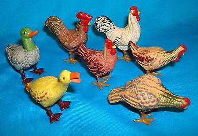 7 Vintage Composition Farm Animals Metal Feet Nativity Chicken Rooster Duck