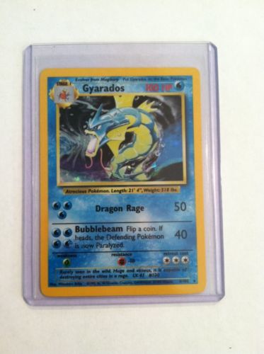 Title (ebay affiliate link): Rare Holo. Gyarados Base # 6/102) + 2 Mystery Original Pokemon Cards
