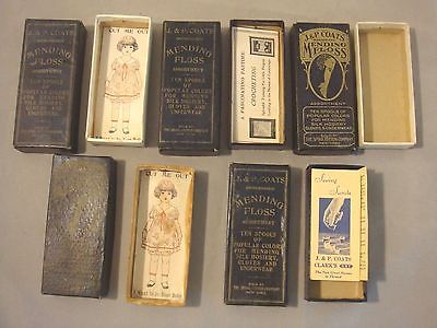 COLLECTION OF 5 VINTAGE J.P.Coates Mending~Floss Boxes~2 Cut Me Out Paper Dolls