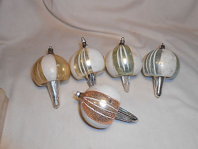 5 VINTAGE RARE CHRISTMAS ORNAMENTS- Mercury Blown Glass -POLAND? Mushroom shape