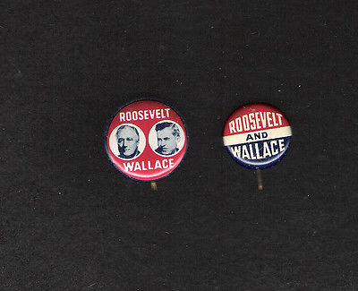 Title (ebay affiliate link): 2 different FDR Franklin D. Roosevelt, HENRY WALLACE 1940 campaign buttons:photo
