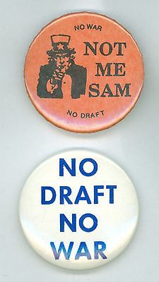 Title (ebay affiliate link): 2 Vintage 1970s Anti War Political Cause Pinback Buttons No Draft No War