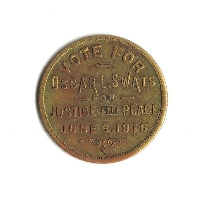 Good Luck Swastika Token - Vote For Oscar L. Swats - J.of the P - June 6, 1916