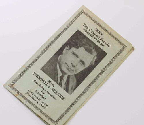 Title (ebay affiliate link): 1940 WILLKIE PAMPHLET "WHY COLORED PEOPLE SHOULD VOTE FOR WENDELL WILLKIE"