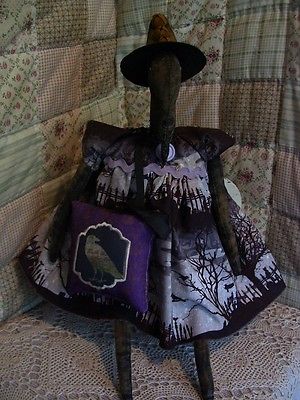 Title (ebay affiliate link): .PRIMITIVE ~CROW WITCH~23in~pillow~sculptered~rustys