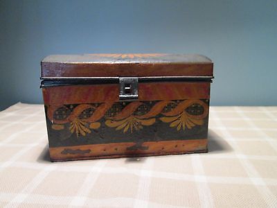 Antique 19th C Painted TOLEWARE DOME TOP Document Box