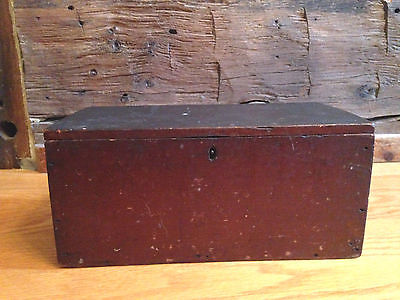 Antique Box Keepsake Vintage Primitive Small POPLAR Wood Letter Document w lock