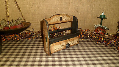 PRIMITIVE WOOD SHELF UNIQUE CERAMIC DRAWER BLACK TAN CRACKLE STAR COUNTRY DECOR