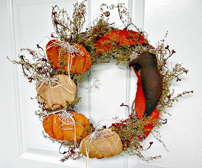 Title (ebay affiliate link): Hand Made Primitive Autumn Fall Pumpkin Crow Sweet Annie Grapefine Wreath