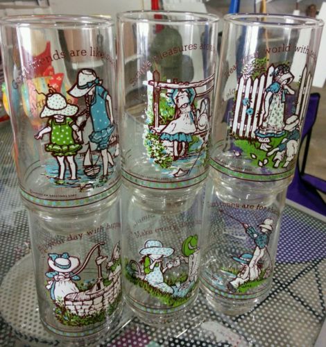 6 VINTAGE HOLLY HOBBIE DRINKING GLASSES