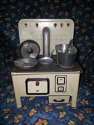 Antique Child's Tin Stove with Pots & Pans MFZ