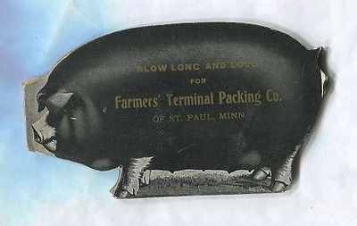 Advertising whistle 1910 Farmer's Terminal Packing Co St. Paul Newport Minn .pig