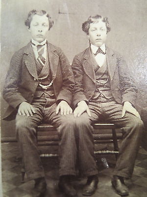 EARLY & UNUSUAL "TWIN BROTHERS" VICTORIAN B&W CABINET CARTE DE VISITE PHOTOGRAPH