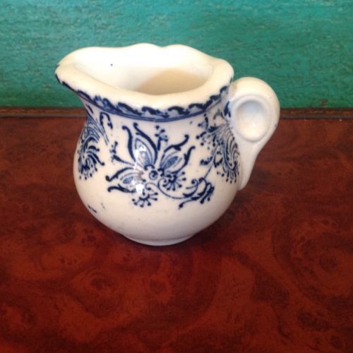 Old Ironstone Miniature Creamer, White With Blue Floral Transfer, Very Pretty