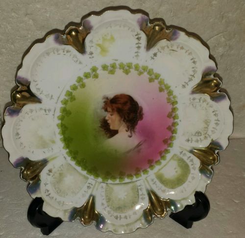 ANTIQUE GERMAN PORTRAIT DISPLAY PLATE OF A PEASANT GIRL