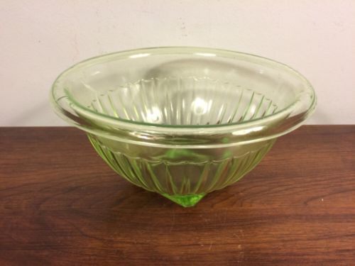 Title (ebay affiliate link): Vintage Green Depression Glass Mixing Bowl Ribbed Rolled Rim Edge Hocking?