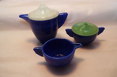 CHILD'S TEA SET AKRO AGATE COBALT TEAPOT CREAMER & SUGAR with LIDS