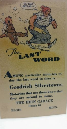 Title (ebay affiliate link): 1929 GOODRICH SILVERTON POST CARD. THE HEIN GARAGE MINNESOTA