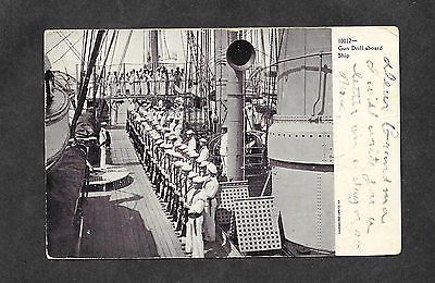 1908 Postcard Gun Drill Aboard Ship!