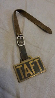 Antique / Vintage Brass TAFT Pocket Watch Fob / with Brown Leather Strap