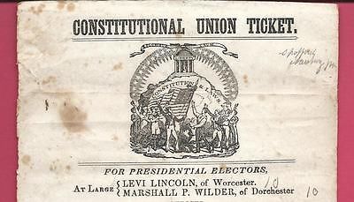 Title (ebay affiliate link): 1860 Constitutional Union Ticket (Ballot) - Town Totals - Newbury, Massachusetts
