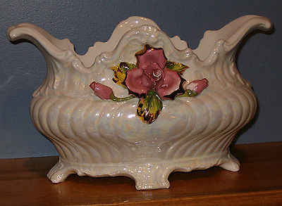 Capodimonte porcelain footed vase with pink roses.