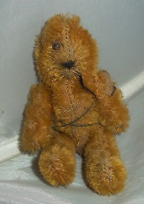 Antique Vintage Miniature Mohair Straw Wood or metal Glass Eyes Jointed Bear 5"