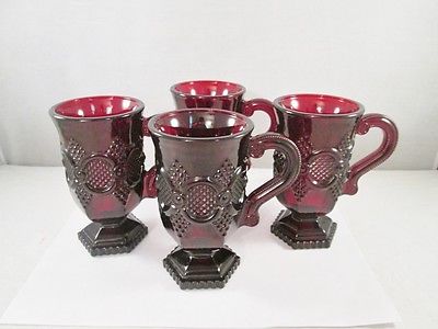 Title (ebay affiliate link): Vintage Ruby Red 1876 Cape Cod Avon Glass Set of 4 Footed Irish Coffee Mugs