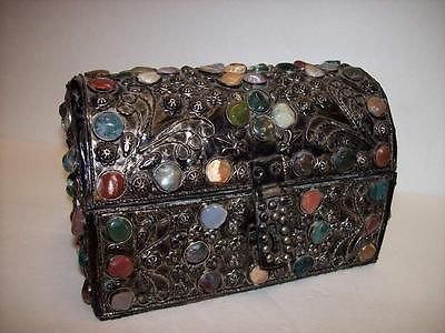 Treasure Chest Style Lidded Jewelry Trinket Domed Lid Box with Gemstones