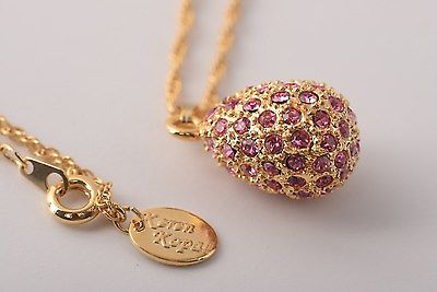 Title (ebay affiliate link): Faberge Easter Egg Necklace wite crystals Keren Kopal gold plated pendant charm