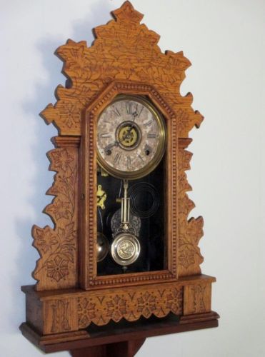 Title (ebay affiliate link): ANTIQUE WILLIAM GILBERT KITCHEN CLOCK "GERANIUM" (ca 1880)