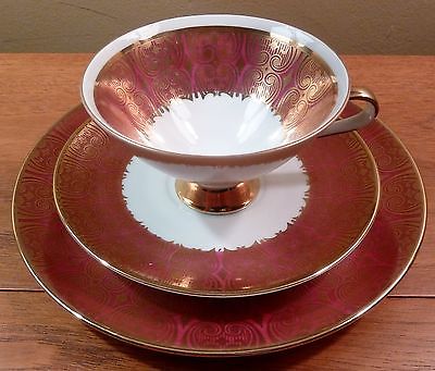 Winterling Marktleuthen cranberry red & gold cup, saucer, dessert plate trio