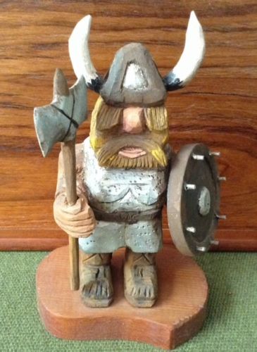Hand Carved Folk Art 7" Wood VIKING - Signed