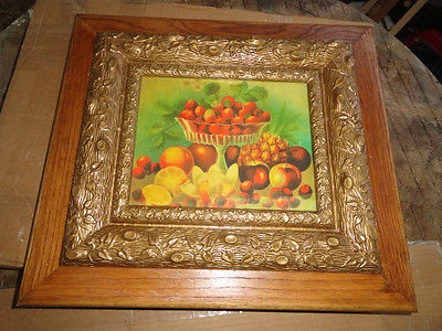 OLD OAK GOLD GESSO ROCOCO FRAME FLOWER FRUIT PRINT 8 x 10