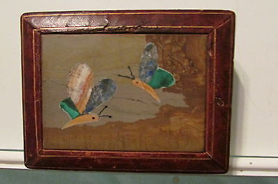 Vintage Pietra Dura Stone and Leather Wooden Box with Butterflies