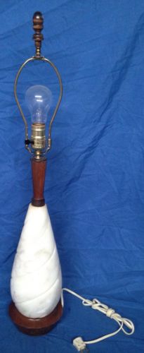 Title (ebay affiliate link): Vintage Mid Century Modern 29" MCM Danish Alabaster Marble Swirl Wood Table Lamp