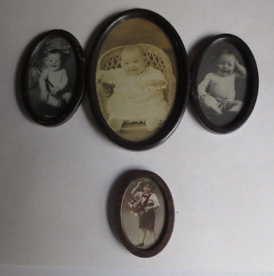 UNIQUE LOT OLD METAL FRAMED CHILDREN PHOTOS ~ TRIPLE FRAME