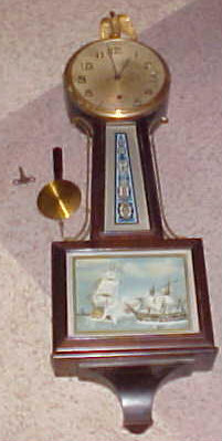 Antique Wooden Wall Banjo Clock 37" Ship Motiff